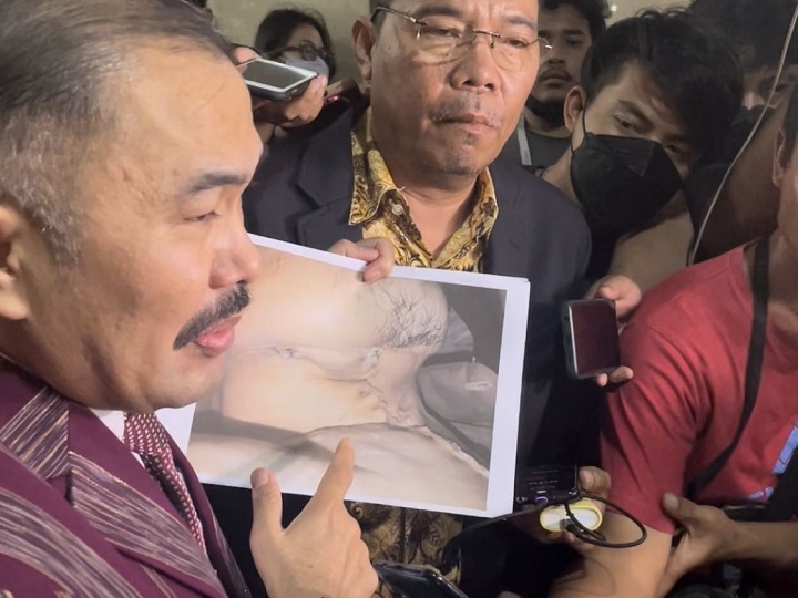 "Luka di bahu ini yang selama ini kita bicarakan sesuai gambar, belum bisa dipastikan luka atau lubang apa. Yang pasti saat disondek, tidak ada lubang ke dalam. Jadi hanya luka terbuka yang diduga bukan akibat peluru," kata Kamaruddin.