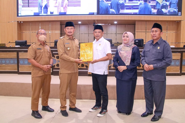 Dalam kesempatan tersebut juga dilakukan penyerahan dokumen rancangan perubahan KUA-PPAS oleh Bupati Lamongan kepada Ketua DPRD Lamongan Abdul Ghofur. jir
