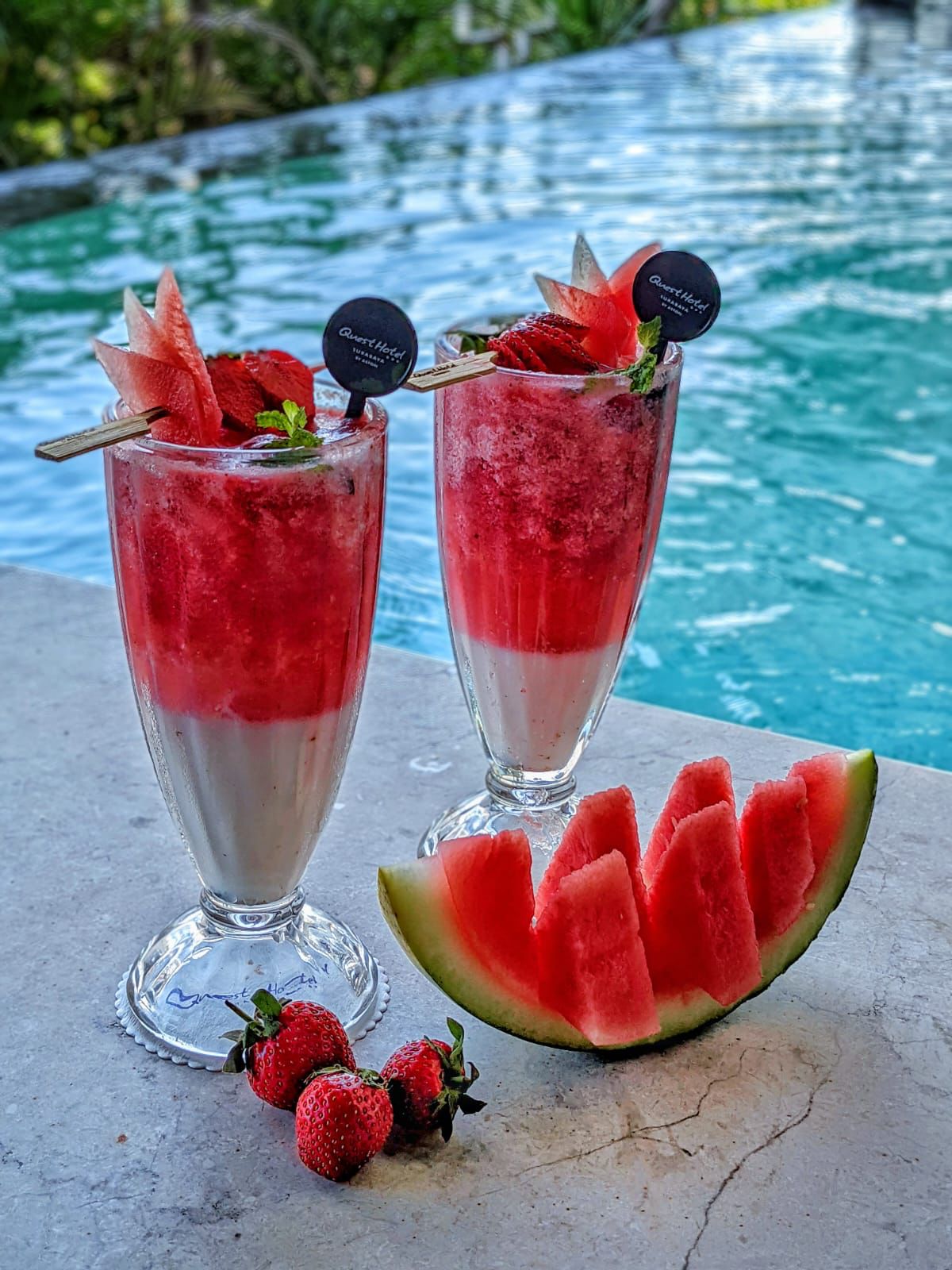 Selain promo kamar, ada juga promo lainnya khususnya untuk minuman, kami memiliki promo minuman sehat dengan tema kemerdekaan yaitu “Es Pedjoang” terdiri dari Buah Semangka dan Strawberry. Minuman segar ini berwarna Merah Putih sesuai dengan Bendera Nasional Negara Indonesia, harga minuman ini cukup terjangkau hanya Rp. 25,000,.nett kalian sudah bisa menikmati minuman ini baik di Cristal Restaurant kami atau di Arjuno Pool kami.