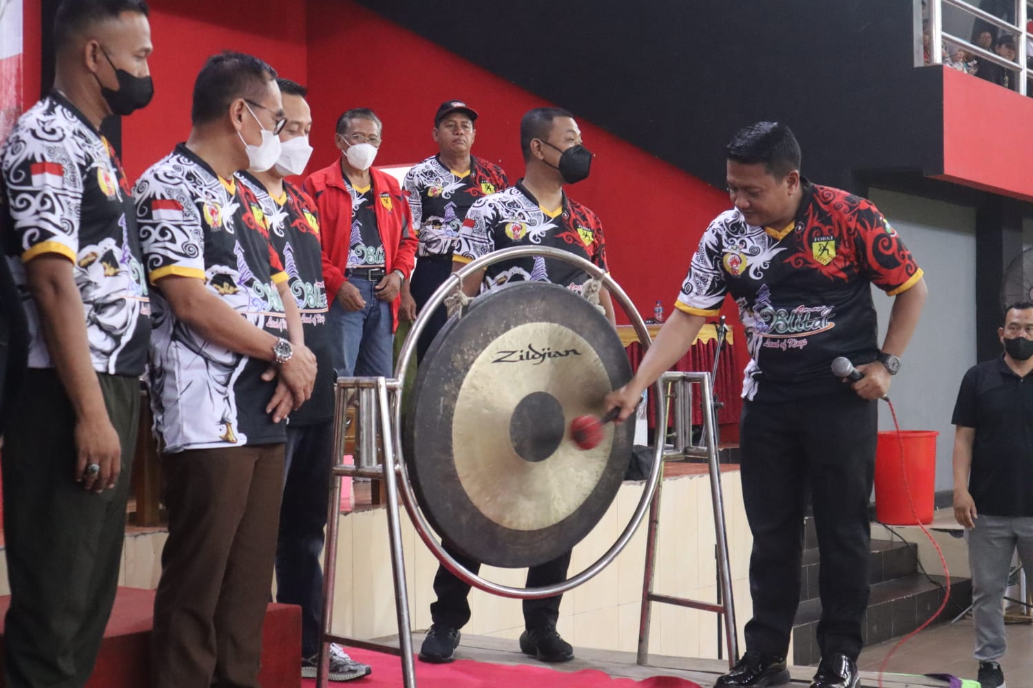 SURABAYAPAGI.COM, Blitar - Kejuaraan Open Festival Pelajar, TNI-POLRI kejuaraan Karate daerah se Jawa Timur bekerjasama dengan INKANAS perebutkan Piala Kapolres Blitar Kota digelar pada Sabtu (13/8) di GOR Sukarno Hatta di jalan Kalimantan Kota Blitar di buka oleh Kapolres Blitar Kota AKBP Argowiyono SH S.IK.M.Si dengan di tandai pemukulan Gong.
