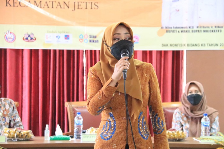Kali ini, Bupati Mojokerto Ikfina Fahmawati, kembali memberikan pembekalan kepada 80 kader PPKBD dan sub PPKBD wilayah eks pembantu Bupati Mojokasri yang terdiri dari empat kecamatan yakni Kecamatan Dawarblandong, Jetis, Gedeg, dan Kemlagi, di Kantor Kecamatan Jetis, (25/8) pagi.