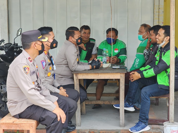 Kunjungan Kapolres Blitar Kota dalam Jumat Semangat diakhiri dengan pemberian bantuan kepada para ojol dan ke pedagang kecil di seputaran terminal PIPP setelah dari Pasar Pon.