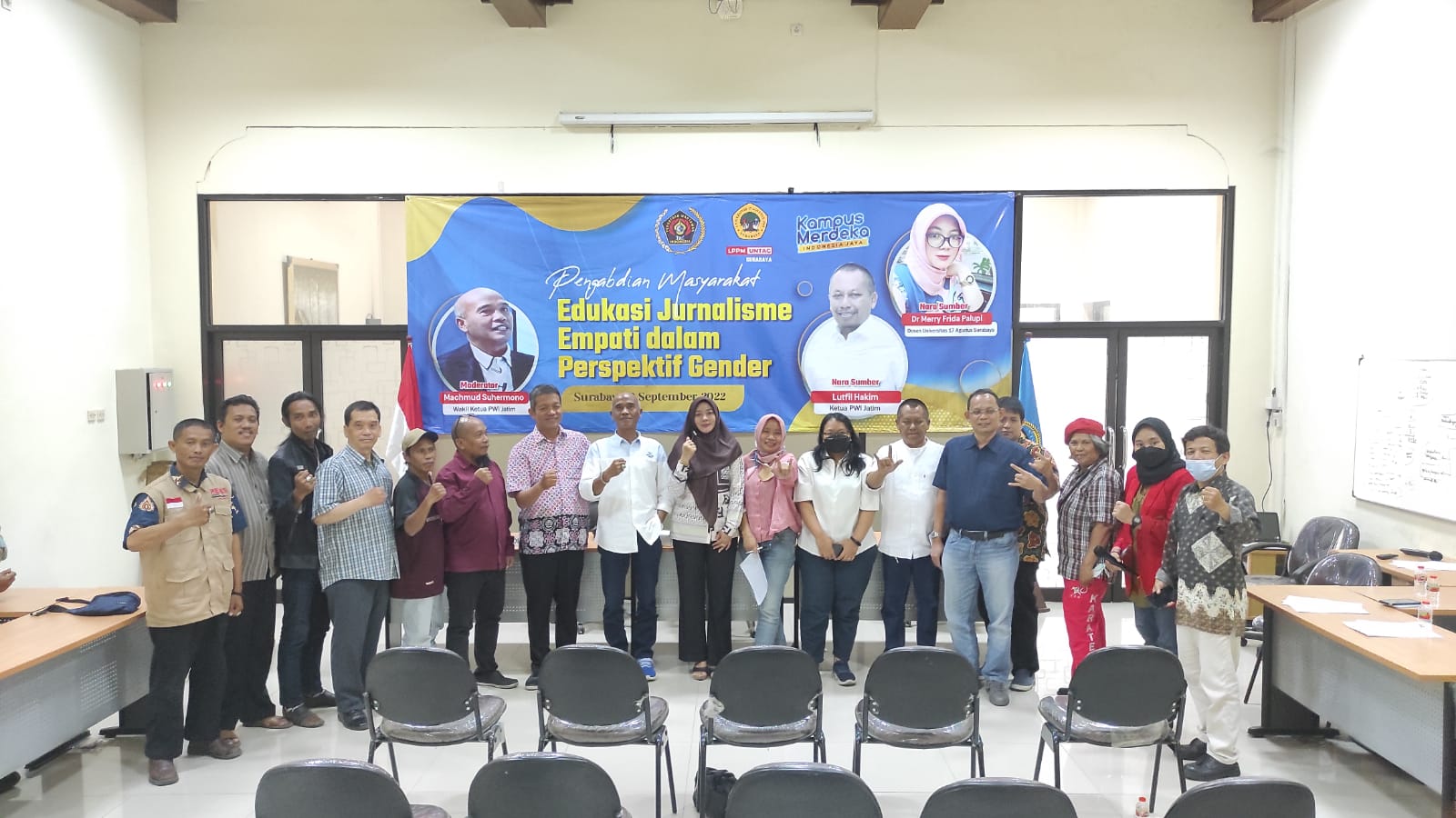 SURABAYAPAGI, Surabaya - Persatuan Wartawan Indonesia (PWI) Jatim gelar Forum Grup Discusion (FGD), Jumat (9/9). Membahas tentang Edukasi Jurnalisme Empati dalam Perspektif Gender, kegiatan Penganbdian Masyarakat ini merupakan kolaborasi Universitas 17 Agustus 1945 (Untag) Surabaya dengan PWI Jatim.