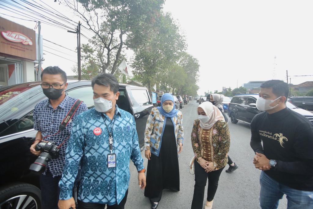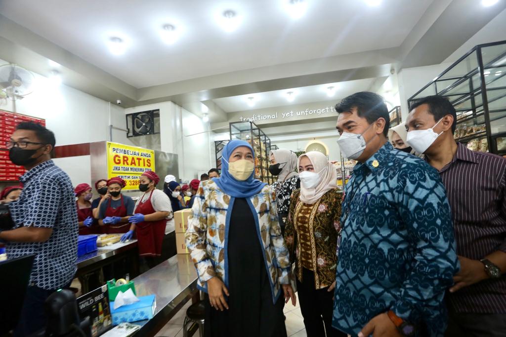 SURABAYA PAGI.COM, Mojokerto - Gubernur Jawa Timur, Khofifah Indar Parawansa, mengunjungi sentra Usaha Mikro Kecil Menengah (UMKM) kuliner Onde-Onde Bo Liem Mojokerto, Minggu (11/9/2022).