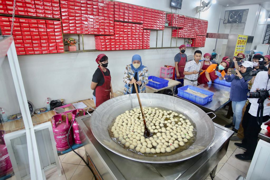 Sambangi UMKM Bo Liem Kota Mojokerto, Gubernur Jatim Goreng Ratusan Onde-Onde