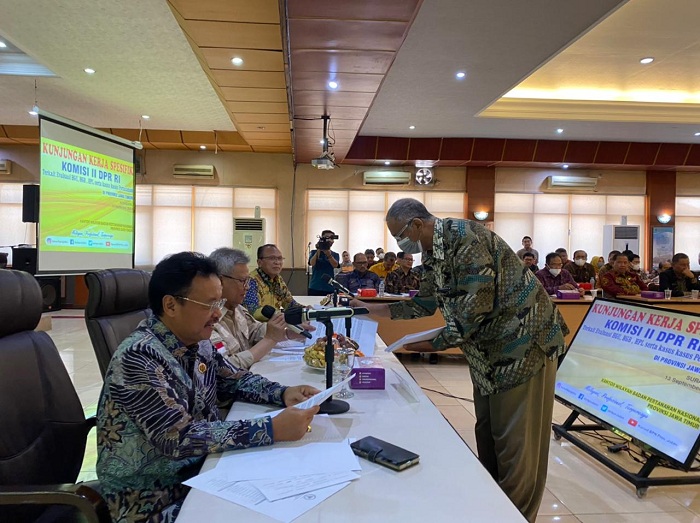SURABAYAPAGI, Surabaya - Komisi II DPR RI melakukan kunjungan Kantor Wilayah Badan Pertanahan Nasional (BPN) Jawa Timur, Selasa (13/9). Agenda kunjungan kerja spesifik ini dalam rangka melakukan evaluasi tentang Hak Guna Bangunan (HGB), Hak Guna Usaha (HGU) Hak Pengelolaan (HPL) dan Penanganan Kasus Pertanahan di Jatim.
