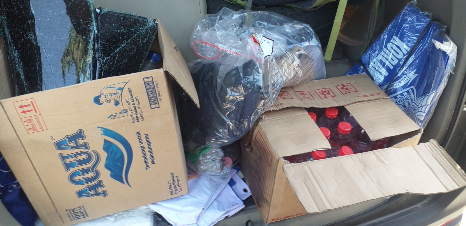 Setelah dilakukan olah TKP untuk mengetahui penyebab keluar asap dalam mobil, polisi temukan botol Aqua besar yang isinya masih mengalir dari botol yang terbuka, ternyata berisi Pertamax yang diletakan di jok belakang sopir, dan sekotak kardus berisi botol botol Pertalite sebanyak 24 biji ukuran teh botol.