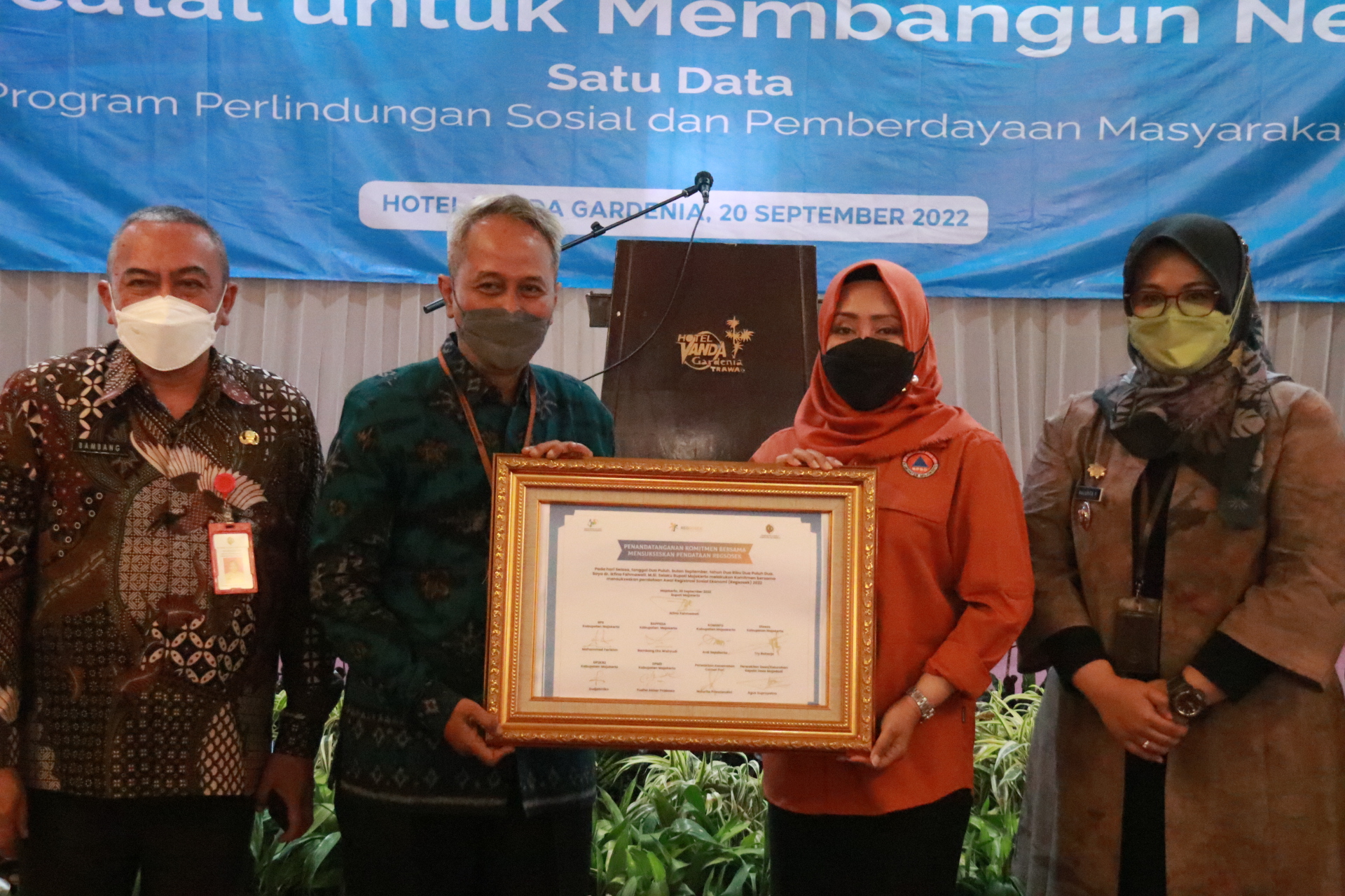 Turut hadir dalam Rakorda Regsosek 2022, Forkopimda Kabupaten Mojokerto, Kepala OPD Kabupaten Mojokerto terkait, serta seluruh Camat dan Kepala Desa se-Kabupaten Mojokerto. Dwi