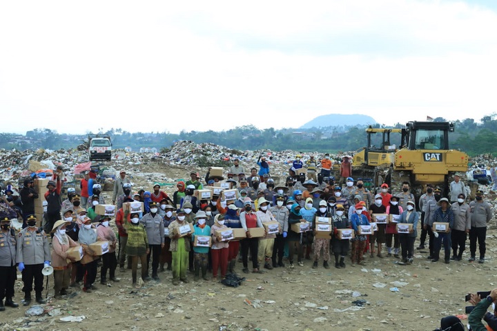 SURABAYAPAGI.COM, Malang - Setelah sebelumnya menyasar ke disabilitas dan lansia yang ada di wilayah Kecamatan Lowokwaru, Polresta Malang Kota berbagi paket sembako di TPA Supit Urang, Kecamatan Sukun, Kota Malang. Sasarannya adalah para pemulung.