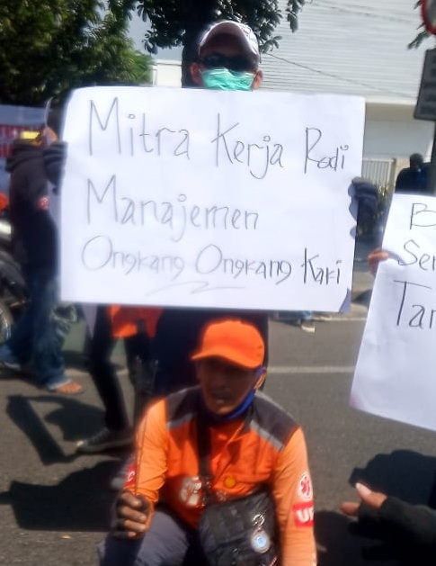 Salah satu demonstran bernama Nono S. selaku driver shopee ini mengatakan bahwa banyaknya potongan dari aplikator dan juga biaya parkir.