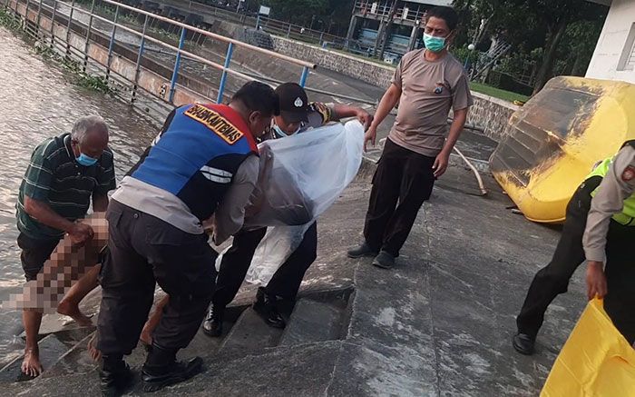 Pria tersebut ditemukan warga dengan tanpa memakai pakaian di aliran sungai Brantas pada penahan sampah Bendungan.