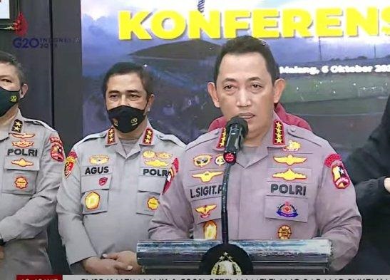 SURABAYAPAGI.COM, Malang - Kapolri Jenderal Listyo Sigit Prabowo menegaskan penyidik Polri menetapkan enam tersangka tragedi Kanjuruhan, Malang. Tiga diantaranya anggota Polri. Sementara warga sipil yang jadi tersangka adalah Direktur Utama PT Liga Indonesia Baru (LIB), Akhmad Hadian Lukita. Selain Abdul Haris, Ketua Panpel Laga Arema vs Persebaya. Juga Security Officer Suko Sutrisno.