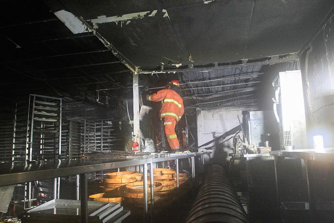 Berdasarkan informasi yang dihimpun, kebakaran terjadi sekitar pukul 16.40. Saat itu, karyawan sedang memproduksi roti di bagian topping. Tiba-tiba kompor CNG terbakar.