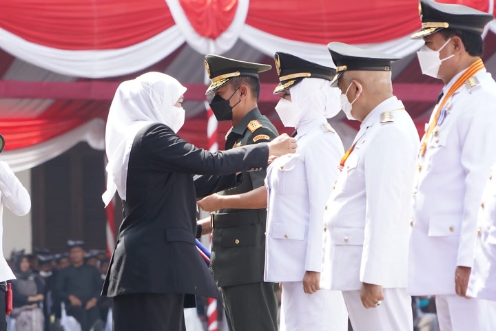 Gubernur Khofifah Indar Parawansa dalam sambutannya mengajak seluruh warga Jawa Timur memanjatkan puji syukur karena Jatim berhasil bangkit dan memenangkan pertarungan besar menghadapi badai Covid-19.