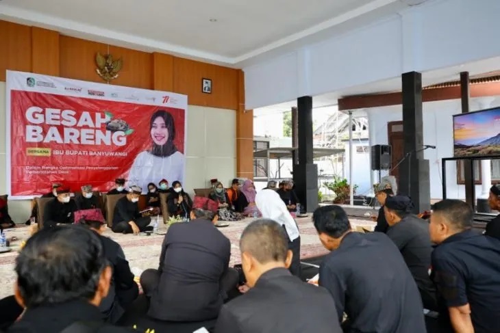 SURABAYAPAGI.COM, Banyuwangi - Bupati Banyuwangi Ipuk Fiestiandani kembali berbincang dengan para kepala desa mengenai program pembangunan, penanganan kemiskinan, stunting hingga persoalan sampah melalui program "Gesah Bareng Bupati".