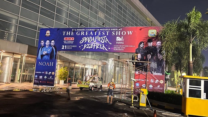 "Kami NOAH, mari kita sukseskan DAF 21 Oktober 2022 Grand City Surabaya. Acara ini dipromotori Edy Torana (red-ETOR Promotor)," ucap Ariel bersama dua anggota personel Band NOAH.fay
