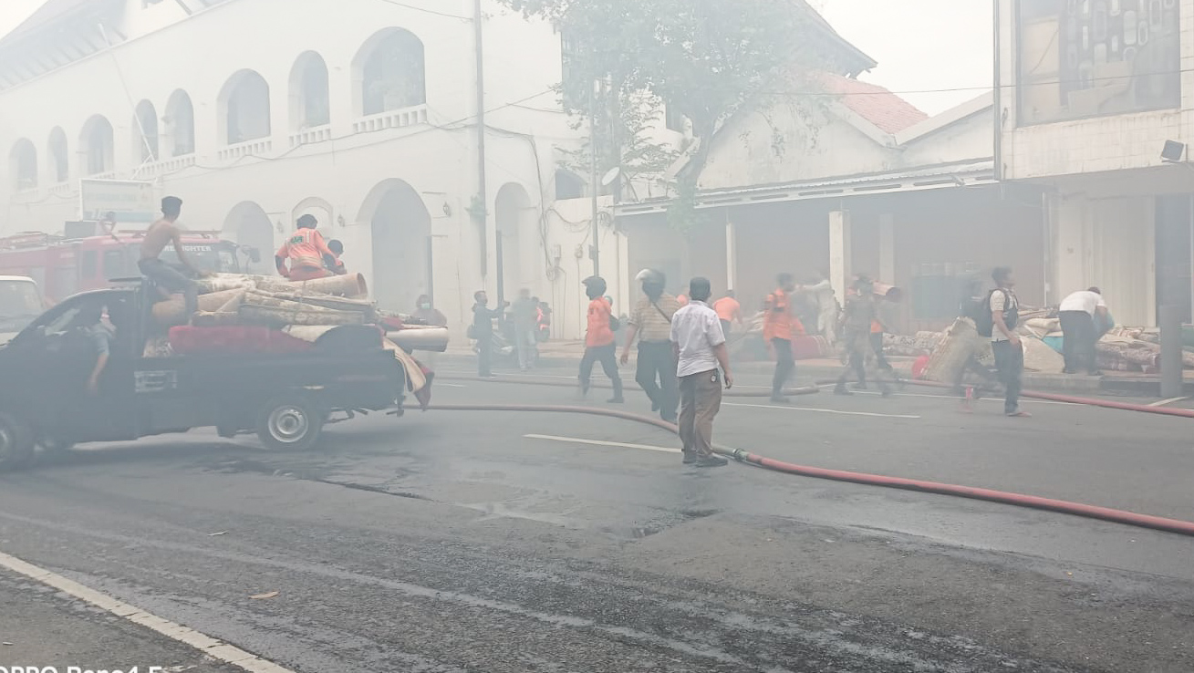 SURABAYAPAGI.COM, Surabaya - Kebakaran hebat terjadi di dua ruko di Jalan Gemblongan Nomor 54, Bubutan, Surabaya, Jawa Timur, pada Minggu (16/10/2022) sekitar pukul 15.29 sore. Salah satu ruko itu adalah toko karpet, sedangkan satunya lagi merupakan bangunan kosong atau tidak berisi. Kedua ruko yang terbakar tersebut diketahui merupakan aset milik dari Harry Winarto (82) dan Herry Widarsono (72).