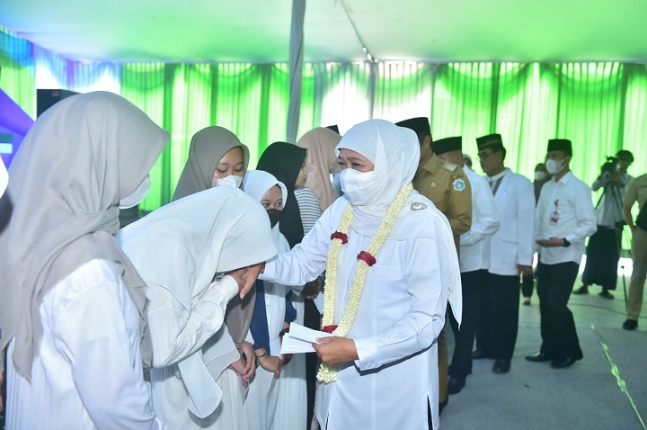 "Kita baru saja meresmikan masjid di SMK N 1 Lamongan. Selain untuk sarana beribadah, masjid ini dijadikan media penguatan karakter religius untuk seluruh warga di sekolah," tutur Khofifah dihadapan 1743 siswa-siswi yang sekaligus memperingati Maulid Nabi 1444 H.