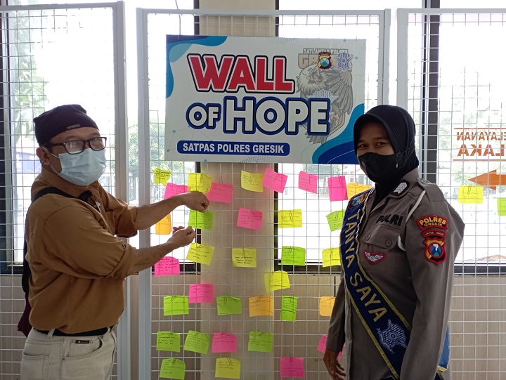 "Wall of Hope bertujuan untuk meningkatkan kualitas pelayanan yang lebih baik terhadap masyarakat yang berkaitan dengan pembuatan atau perpanjangan SIM dan lain sebagainya. Agar mempermudah masyarakat untuk memberikan saran dan masukan terhadap pelayanan SIM di Satpas Satlantas Polres Gresik dan kantor Samsat sehingga dapat digunakan sebagai acuan untuk meningkatkan kualitas pelayanan," tutup Agung.