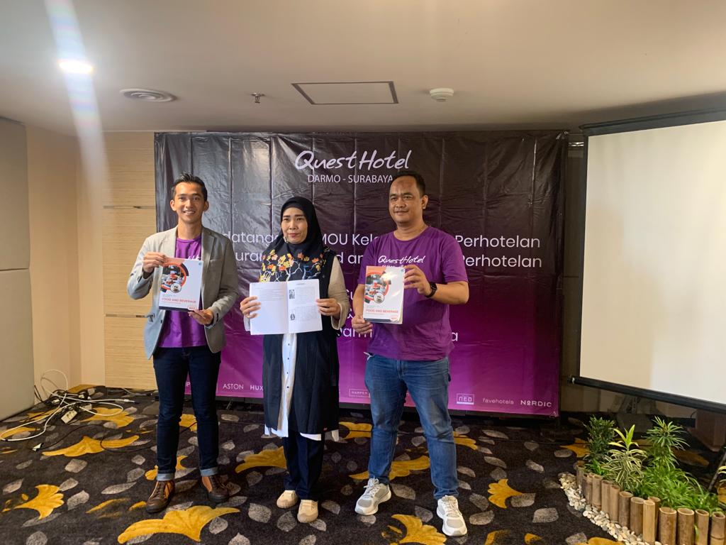 SurabayaPagi.com-Surabaya: Berkolaborasi dengan SMKN 8 Surabaya pada hari Sabtu 22 oktober 2022 Quest Hotel Darmo Surabaya melakukan kegiatan atau acara Peluncuran Buku F&B perhotelan bersama SMKN 8 Surabaya yang dimana kolaborasi tersebut sudah terjalin sejak tahun 2019, Peluncuran Buku dan Penandatanganab MOU itu juga langsung di tanda tangani oleh Bapak David Eko Susanto selaku General Manager Quest Hotel Darmo Surabaya dan Ibu Indah Setiawati Spd Kaprodi Perhotelan SMKN 8 Surabaya.