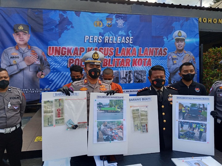 "Setelah menabrak Setyo Agung (21) warga Jalan Sono Keling Kel Rembang Kec Sananwetan saat mengendarai motornya, pengemudi truk yang bernama TM melarikan diri meninggalkan korbannya, setelah kita menerima laporan, langsung anggota lalu lintas melakukan olah TKP dan membawa korban ke RS Mardi Waluyo Kota Blitar, untuk korban meninggal dunia di TKP," jelas AKBP Argowiyono didampingi Kasat Lantas AKP Mulyo Sugiharto S.IK.