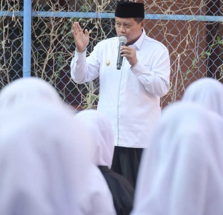 SURABAYAPAGI.COM, KOTA DEPOK -- Wakil Gubernur Jawa Barat Uu Ruzhanul Ulum menjadi Pembina Apel Pagi sekaligus meninjau kegiatan pembelajaran tatap muka di SMK Kesuma Bangsa 2, Kecamatan Beji, Kota Depok, Senin (15/8/2022).
