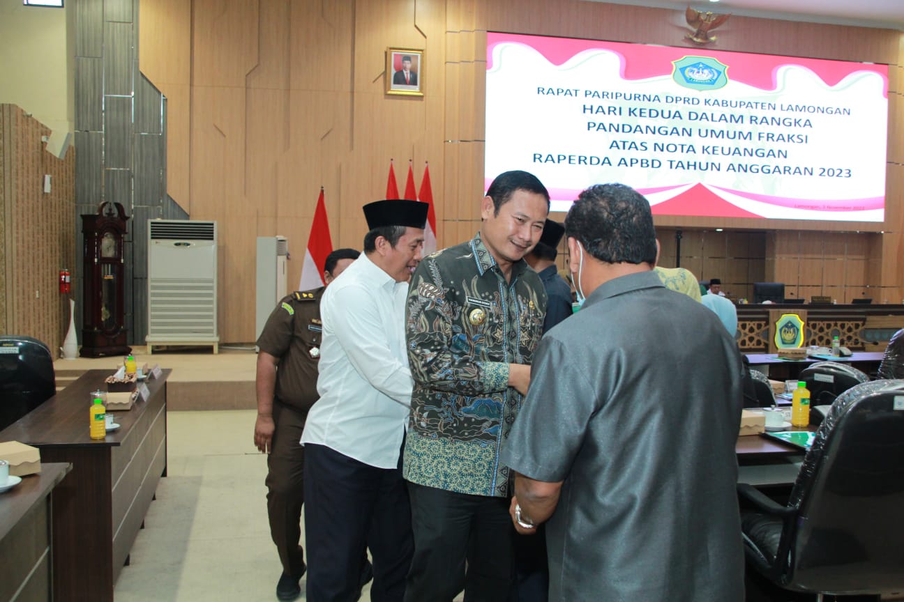 Melihat keberhasilan Pemkab Lamongan di tahun 2022 dengan memfokuskan di bidang kesehatan, di tahun 2023 mendatang untuk mewujudkan kesejahteraan masyarakat, 7 fraksi menyampaikan pandangannya terkait upaya peningkatan efisiensi, efektifitas transparansi dan akuntabilitas pengelolaan keuangan daerah, baik dari sisi pendapatan, belanja maupun pembiayaan Anggaran Pendapatan dan Belanja Daerah.