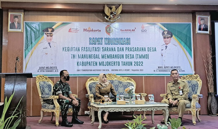 Rakor bertajuk fasilitasi sarana dan prasarana TMMD Kabupaten Mojokerto tahun 2022 itu diinisiasi DPMD Kabupaten Mojokerto bersama Kodim 0815 Mojokerto. Rakor tersebut dilakukan untuk mengevaluasi TMMD tahun 2022 yang telah terlaksana. Sekaligus mempersiapkan kegiatan TMMD di tahun 2023.