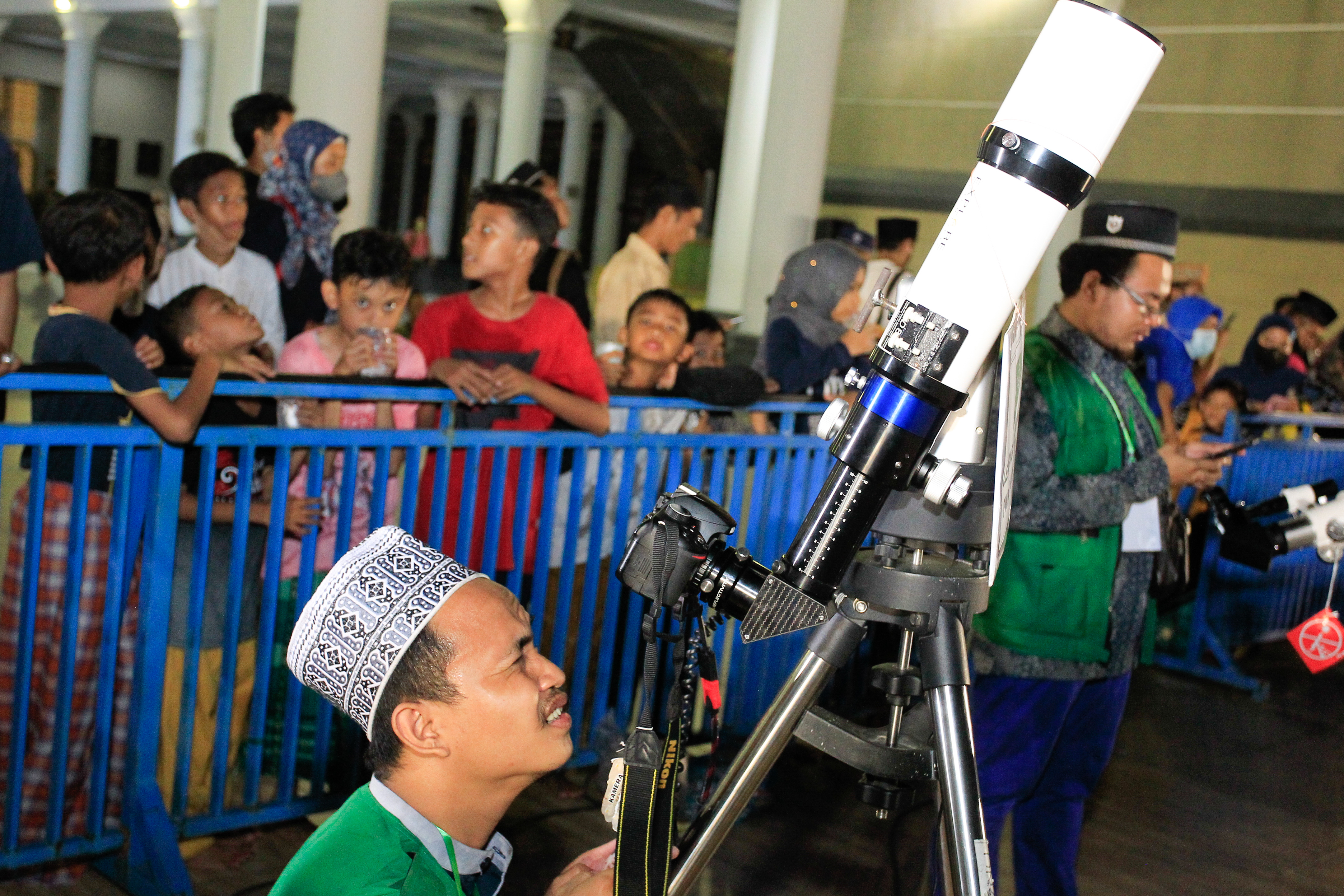 Warga Surabaya dan para Jamaah masjid Al - akbar antusias berukumpul di halaman masjid ingin melihat datangnya Gerhana Bulan meskipun cuacanya agak mendung.