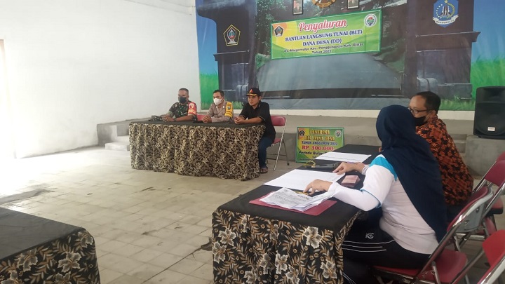 SURABAYAPAGI.COM, Blitar - Penyaluran Bantuan Langsung Tunai Dana Desa (BLT-DD) di desa Margomulyo Kecamatan Panggungrejo Kabupaten Blitar digulirkan pada Jumat (11/11) di Balai Desa setempat berjalan lancar. Guna pengamanan sekaligus pendampingan pembagian BLT-DD, Desa Margomulyo meminta bantuan Bhabinkamtibmas dan anggota Polsek/Babinsa Koramil Panggungrejo.