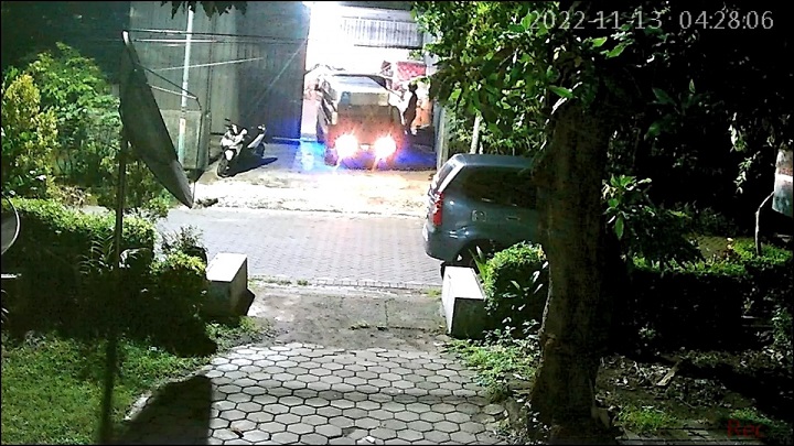 Kedua bandit itu datang pertama kali ke gudang tersebut, dengan mengendarai motor diduga Honda Vario warna putih, secara berboncengan, sekitar 03.48 WIB.