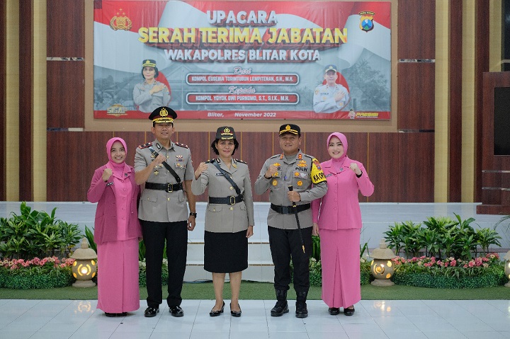 Jabatan Wakapolres Blitar Kota yang lama Kompol Eusebia Torimtubun S.H., M.H diserahkan pada Kompol Yoyok Dwi Purnomo S.T S.I.K M.H. Sementara Kompol Eusebia Torimtubun S.H., M.H akan memangku jabatan sebagai Kanit 2 Bawassidik Ditresnarkoba Polda Jatim