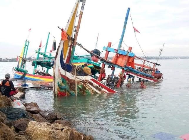 Diduga dua kapal nelayan yang ditumpangi delapan Anak Buah Kapal (ABK) tersebut tenggelam usai dihantam ombak saat cuaca buruk melanda perairan utara laut jawa.