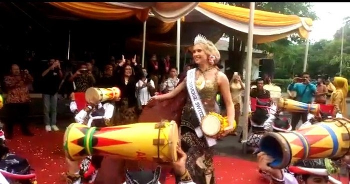 Selanjutnya para pejabat pemerintah bersama Miss Universe Switzerland Alia Guindi akan bergerak menuju Pendapa Kongas Arum Kusumaning Bangsa dengan menaiki delman.