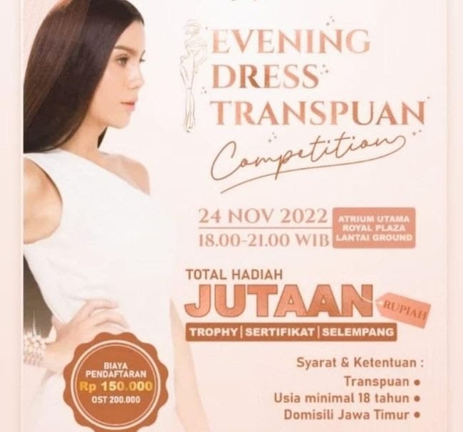 Dalam twitnya, akun tersebut melampirkan pamflet acara tersebut. Di situ tertulis kontes tersebut bertajuk 'Evening Dress Transpuan Competition'. Waktu penyelenggaraan acara tersebut 24 November 2022, pukul 18.00-21.00 WIB. Lokasinya di atrium utama Royal Plaza lantai ground.