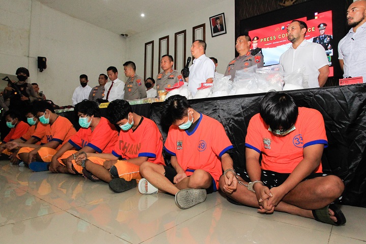 “Jadi dibagi 5 kilogram masing-masing kota. Kami amankan di Jakarta tersangka HD dan RZ. Lalu, di Surabaya ada AZ, SG dan RM,” imbuhnya.