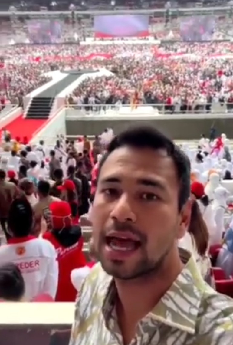 “Nusantara Bersatu, alhamdulillah 150-200 ribu yang hadir untuk Presiden Jokowi. Keren dan bangga RANS menjadi bagian untuk kesuksesan acara ini. E.O RANS Entertainment,” tulis Raffi Ahmad.