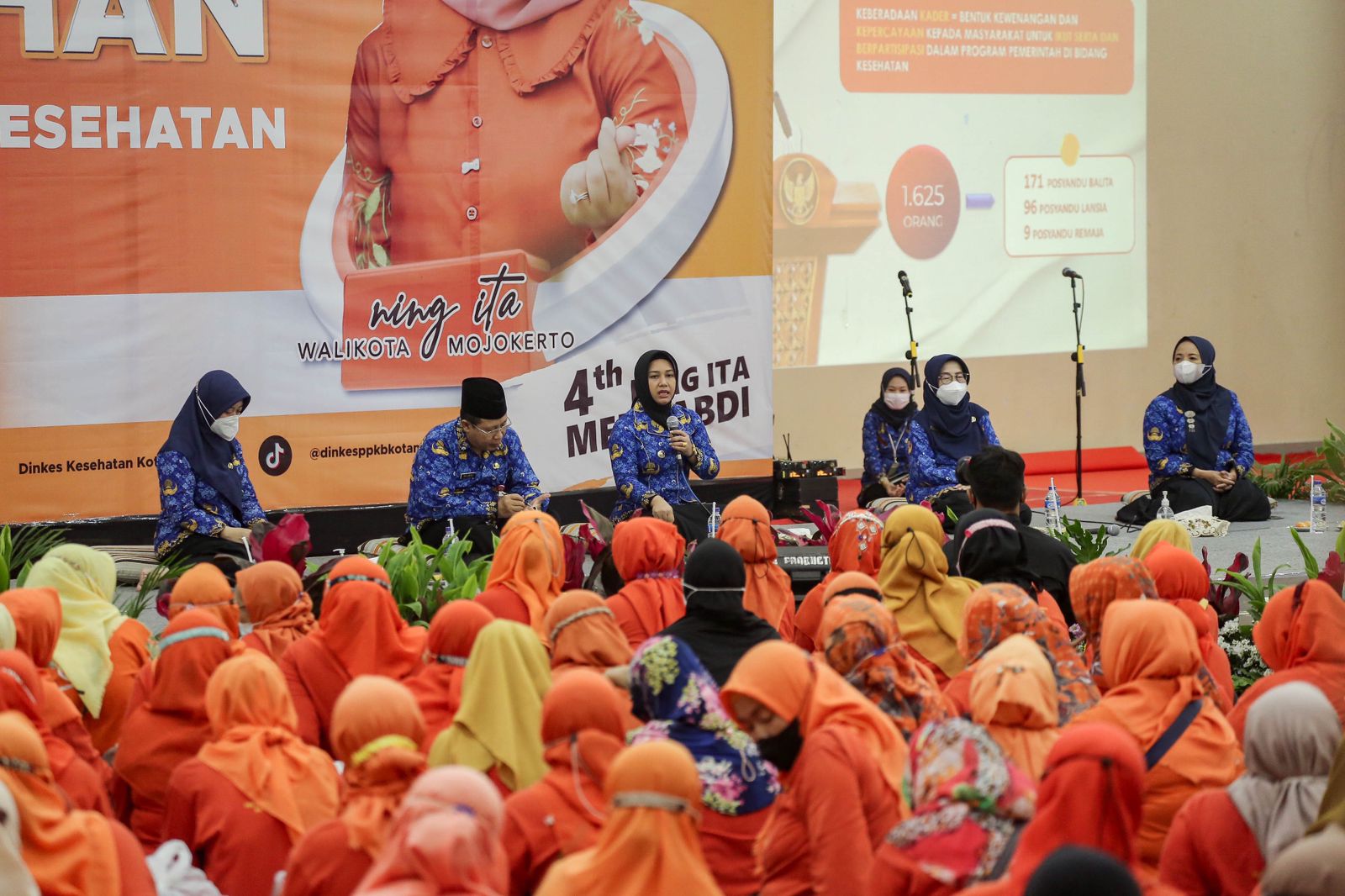 Walikota Mojokerto Ning Ita saat memberi semangat kepada ribuan kader kesehatan Kota Mojokerto