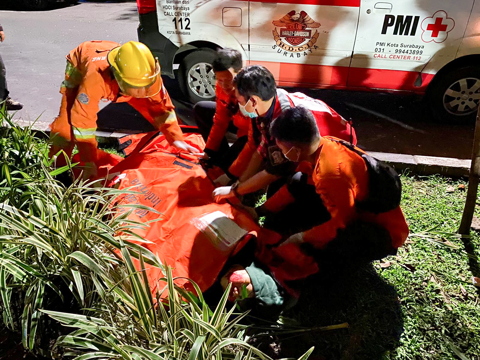 Jenazah LL langsung dievakuasi ke kamar jenazah RSUD dr Soetomo Surabaya, sementara RS yang mengalami luka di tangan kanannya mendapatkan penanganan dari PMI yang ada di lokasi kecelakaan.