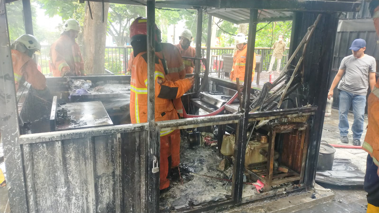 SURABAYAPAGI.COM, Surabaya - Insiden kebakaran terjadi di jalan Mayjen Jonosewojo daerah Loop Plaza Graha Famili Surabaya, Minggu (04/12/2022) pagi. Kebakaran tersebut menghanguskan sebuah stand food mie Tidar.