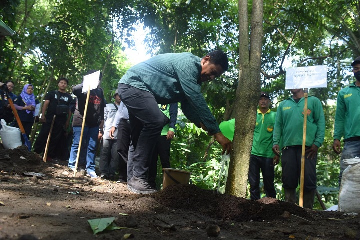 SURABAYAPAGI.COM, Kediri - Wali Kota Kediri Abdullah Abu Bakar mengendarai vespa bersama Komunitas Scooterist Kediri Raya untuk melakukan tanam pohon di Sumber Cakarsi, Jumat (9/12). Penanaman pohon ini juga berkolaborasi dengan Komunitas Hijau Daun dalam rangka memperingati Hari Menanam Pohon Indonesia, 28 November lalu. Ada 85 pohon yang akan ditanam dengan beragam jenisnya seperti Pule, Tabe Puya, Trembesi, Sukun, Mauni, Pete, dan Ingas.