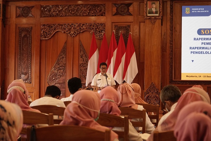 SURABAYAPAGI.COM, Mojokerto - Pemerintah Kota (Pemkot) Mojokerto melalui Badan Pengelolaan Keuangan dan Pajak Daerah (BPKPD) menggelar Sosialisasi Rancangan Peraturan Wali Kota (Raperwali) Sistem Akuntansi Pemerintah Daerah dan Raperwali Sistem dan Prosedur Pengelolaan Keuangan Daerah di Ruang Sabha Mandala Madya Kantor Pemkot Mojokerto, Rabu (14/12).