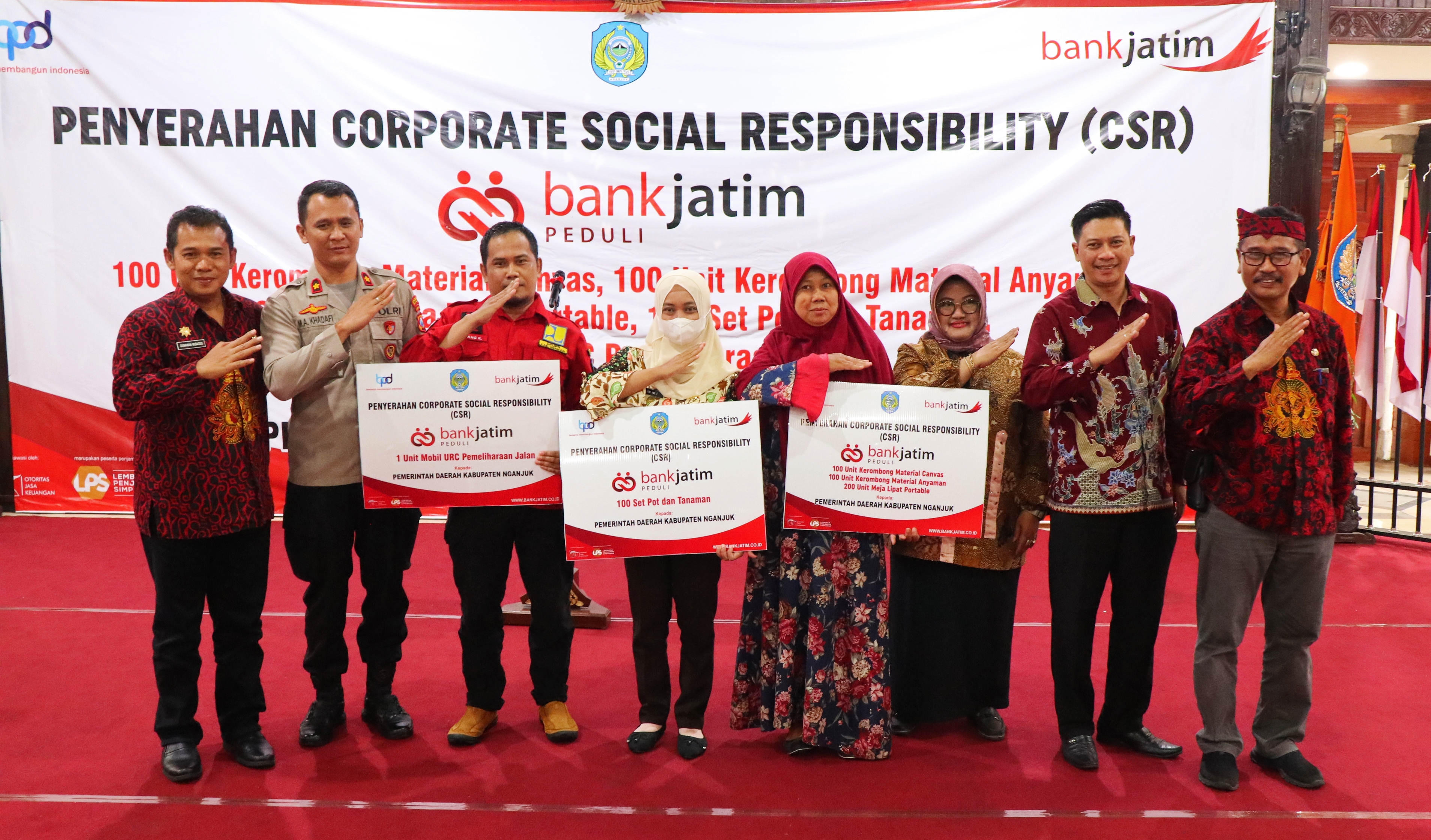 ”Terimakasih kepada Bank Jatim atas kepeduliannya terhadap kami dan masyarakat Kab. Nganjuk. Semoga sinergitas dengan Bank Jatim terus terjaga dan terjalin. CSR dari bankjatim ini merupakan selaras dengan visi misi Bupati untuk mewujudkan masyarakat Kab. Nganjuk yang maju dan bermartabat yaitu bangun deso noto kuto," ucap Gunawan Widagdo.