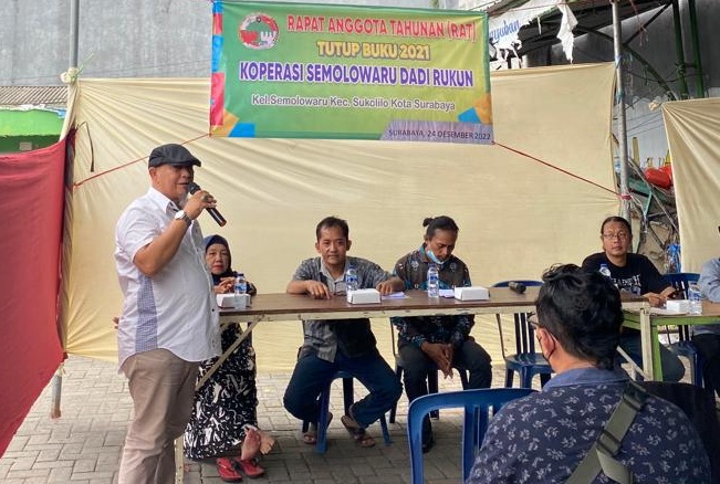 Priya Aji Pambudi menjelaskan, dalam RAT ketiga KSDR tahun 2021 membahas masalah pembukuan keuangan yang disaksikan Dinas Koperasi Kota Surabaya. Dan alhasil pihak pengelola pasar Semolowaru memperoleh keuntungan 4 persen untuk tahun 2021 dari saldo Rp. 79.000.000.