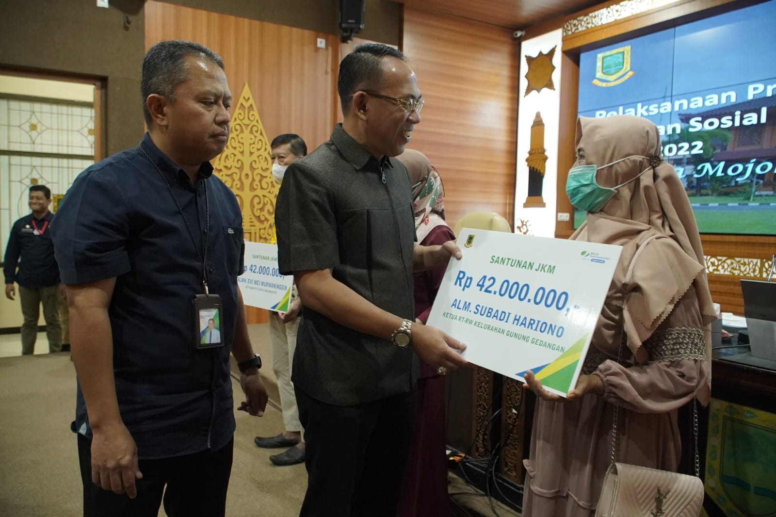 Sekedar informasi, dalam acara tersebut juga dilakukan penyerahan santunan Program Jaminan Kematian (JKM) kepada tiga orang ahli waris dari GTT/PTT dan Ketua RT/RW yang kepesertaannya ditanggung oleh Pemkot Mojokerto. Masing-masing ahli waris menerima santunan sebesar Rp. 42 juta. Dwi
