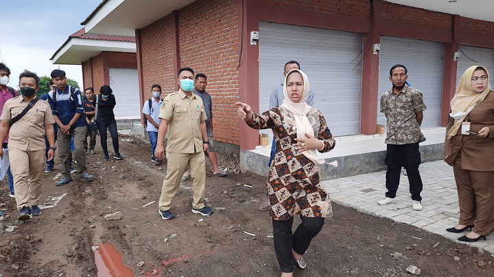 Ditemani Kepala Dinas Koperasi, UKM, Perindustrian dan Perdagangan (Diskopukmperindag) Kota Mojokerto, Petinggi Pemkot Mojokerto ini mengecek satu persatu bangunan kios pasar yang bersumber dari APBN dan APBD Kota Mojokerto.