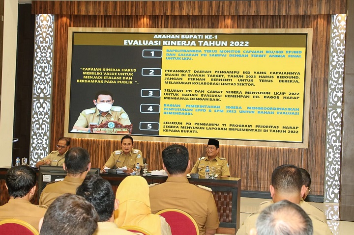 Dengan mengusung tema 'Penguatan Daya Saing SDM, Penunjang Sosial Ekonomi dan Pemberdayaan yang Inklusif' pada pembangunan 2023, bupati mengawali arahannya dengan evaluasi kinerja tahun 2022. "Capaian kinerja harus memiliki value untuk menjadi etalase dan berdampak pada publik," jelasnya.