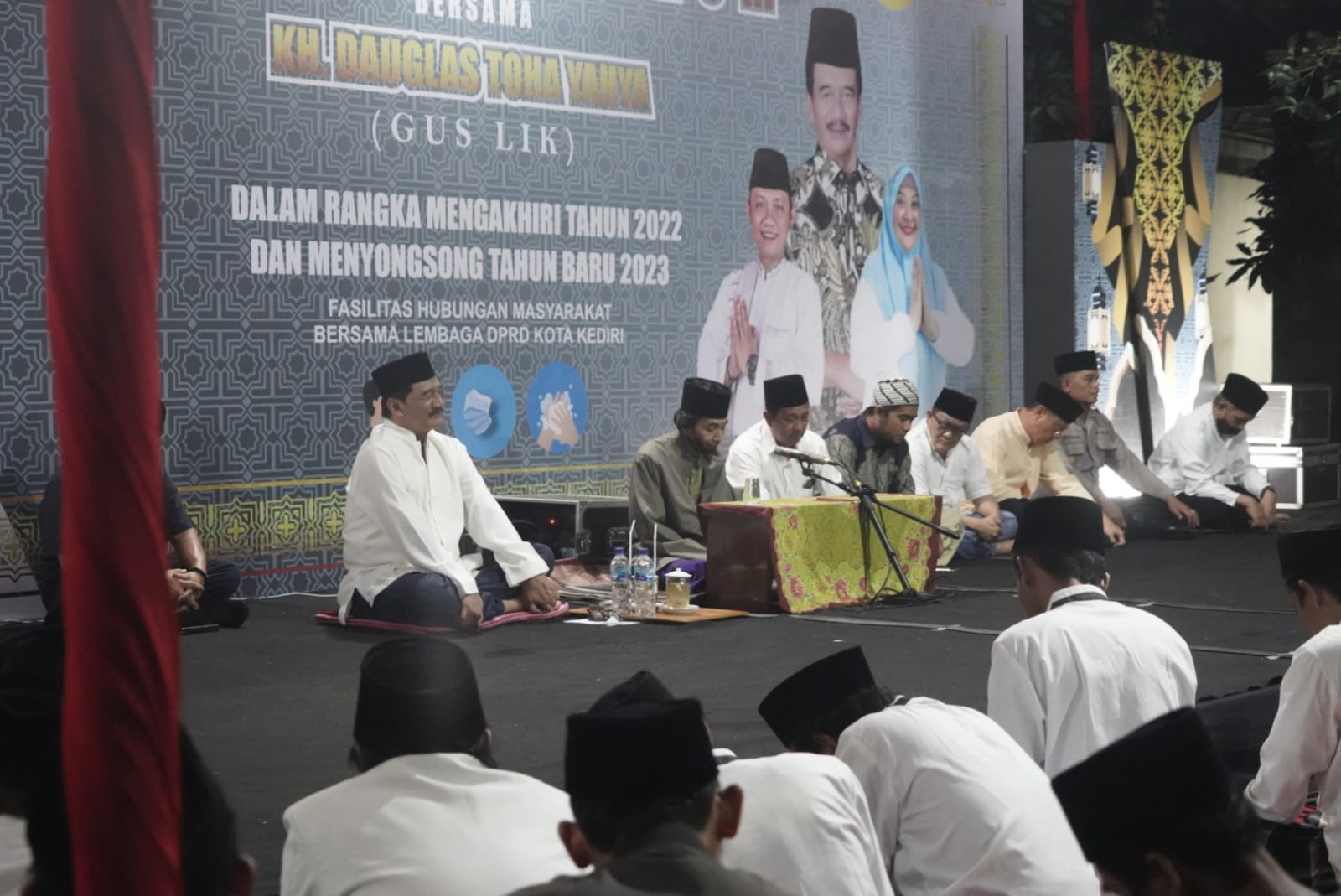 SURABAYAPAGI.COM, Kediri - DPRD Kota Kediri menggelar pengajian umum bersama KH Dauglas Toha Yahya. Sebagai fasilitasi hubungan masyarakat dengan wakil rakyat, mereka berbaur dalam gelaran Kamis Malam Jumat, 29 Desember 2022 tersebut.