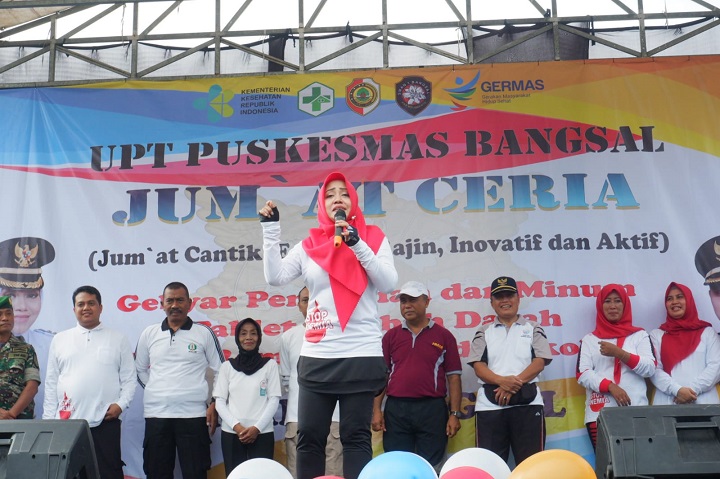 Kegiatan tersebut juga turut dihadiri Kepala Dinas Kesehatan Kabupaten Mojokerto dr. Ulum Rokhmat, Kabid Kesmas Dinas Kesehatan, Kepala Puskesmas Bangsal, Kepala Sekolah SMAN 1 Bangsal Sugiono, dan Forkopimca Bangsal.