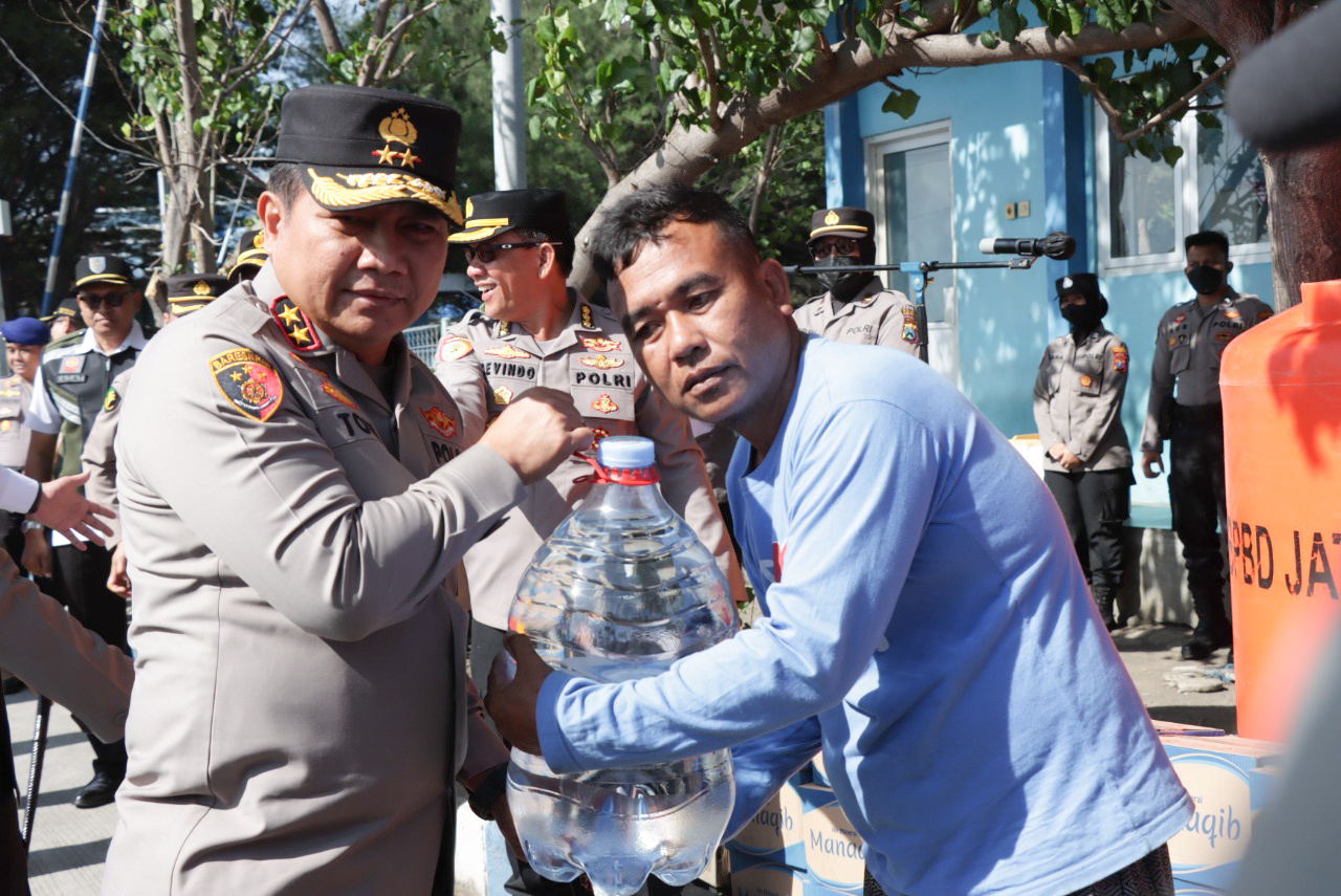 Kapolda Jatim Gelontorkan Bantuan Air Mineral Bagii Penduduk Pulau Gili Ketapang